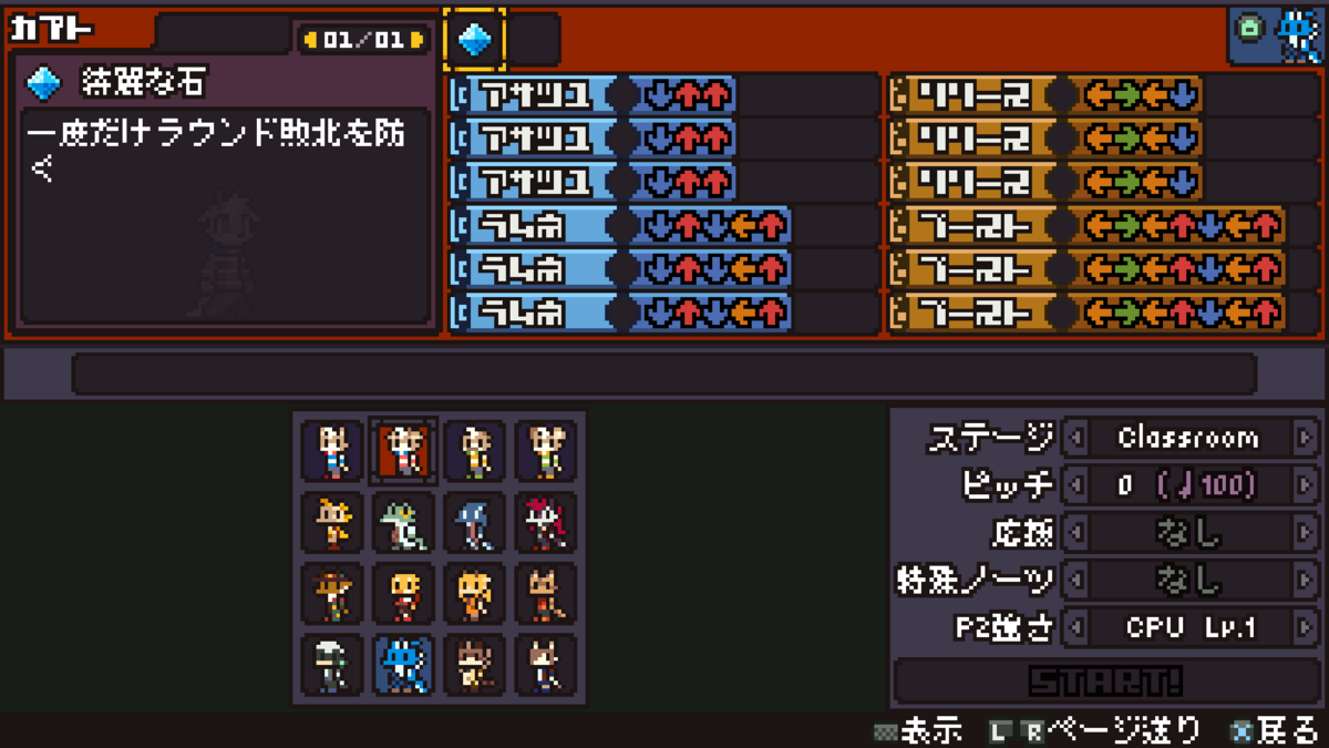 なお,攻撃する系の実績は,相手にダメージ調整のために攻撃してもらうことが必要になるので,その際はテトリーなど,好きなキャラでやってください.